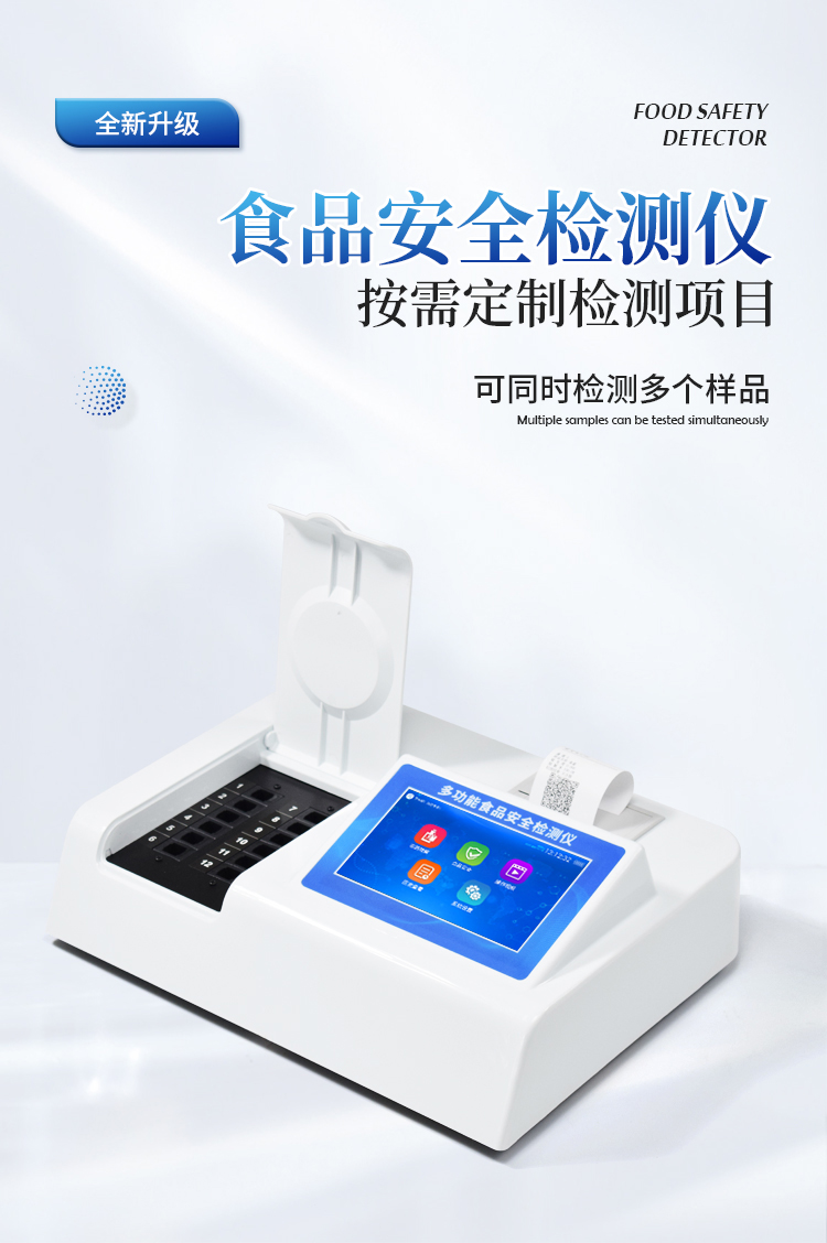 该多功能食品安全检测仪为集成化食品安全快速检测分析设备,广泛应用于食药监局、卫生部门、高教院校、科研院所、农业部门、养殖场、屠宰场、食品肉产品深加工企业、检验检疫部门等单位使用。