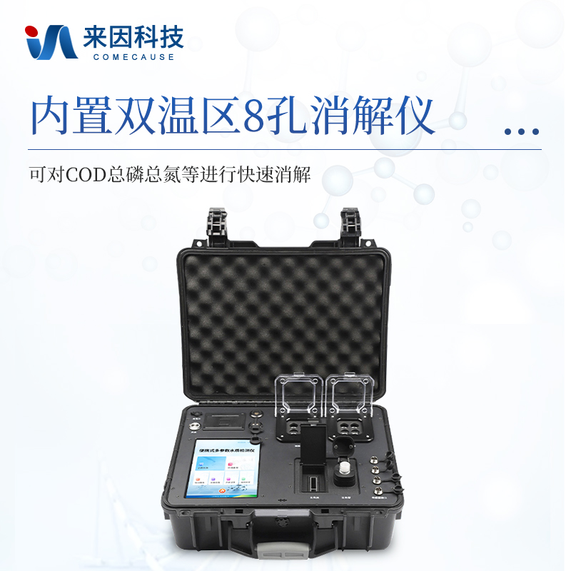 4、内置双温区8孔消解仪,左右温区独立控制,可对COD总磷总氮等进行快速消解。