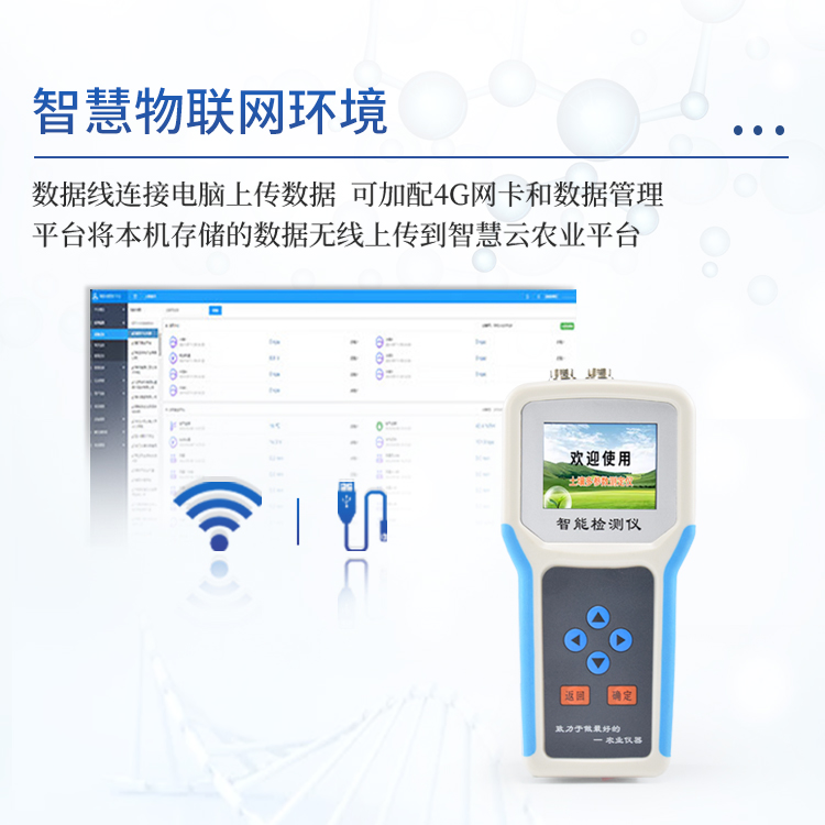 6、仪器配备4G联网功能数据管理平台,将本机存储的被测点环境因子测量历史数据无线上传到智慧云农业平台,方便用户进行数据管理和长期分析。